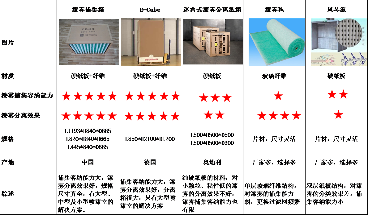 本文對比了市場上常見的幾種干式噴漆室及其所采用的干式漆霧分離技術(shù),對比的干式漆霧分離技術(shù)有...